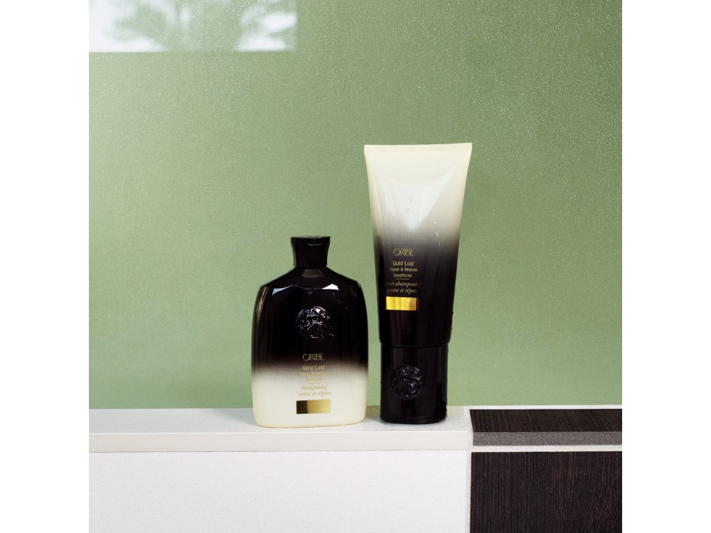 Oribe GOLD LUST Repair and Restore maska jako moderní elixír proniká hluboko do vlasového vlákna a obnovuje ho díky léčivému bílému čaji, baobabu, jasmínu a bio-restorativnímu komplexu. Zlepšuje pružnost vlasů, posiluje je a vrací jim hebkost, objem a přirozený lesk. Každá dávka navrací namáhané vlasy do jejich nejlepší kondice.