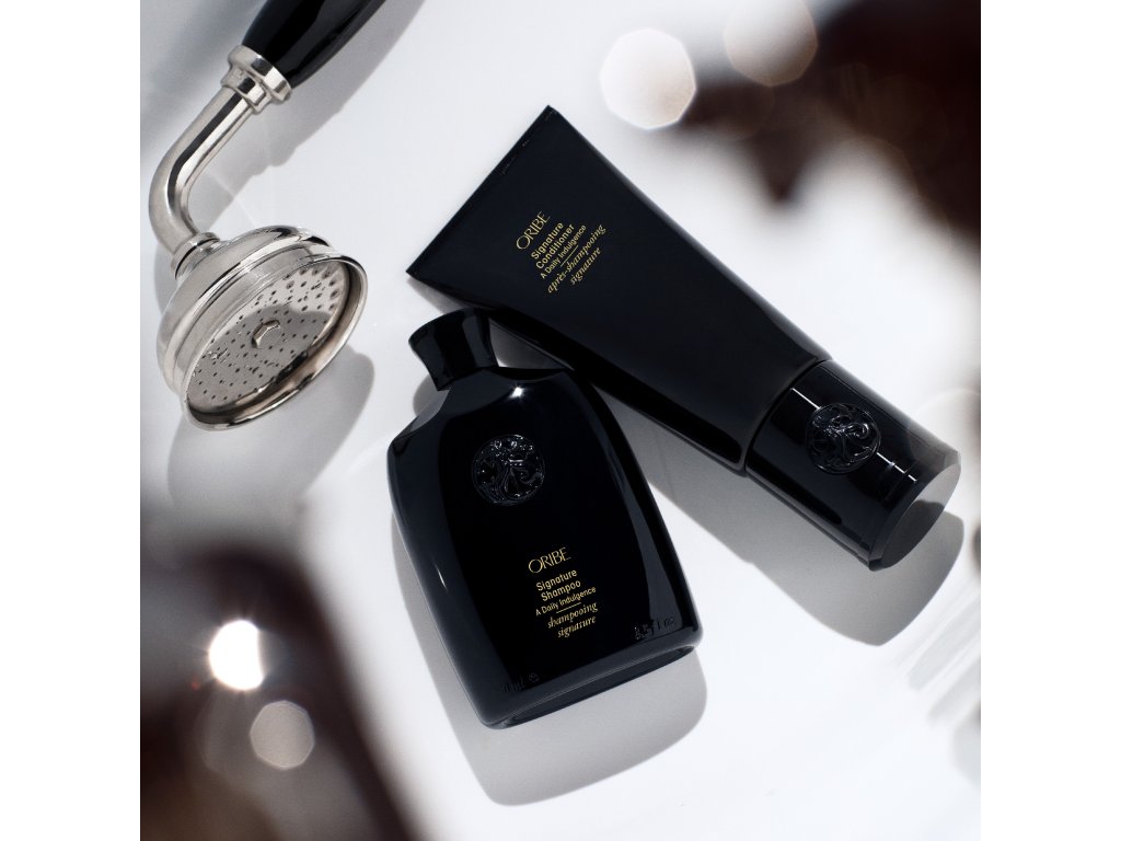 Oribe Signature Complex - Extrakty z vodního melounu, liči a květu protěže chrání vlasy před oxidačním stresem, foto-stárnutím a zhoršováním přirozeného keratinu, zatímco chrání před vysušováním, poškozením a vyblednutím barvy vlivem vnějších faktorů